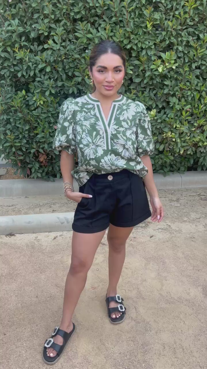 Elevate your everyday wardrobe with the Marlowe Floral Collared Top in Green, a chic and versatile piece designed for the modern woman. This women’s top pairs perfectly with tailored trousers for the office or your favorite jeans for a casual weekend brunch. The puffed sleeves and delicate striped trim add a feminine touch, while the collared neckline keeps it polished and put-together. Ideal for those who love effortless style, this top can be layered under a blazer or worn solo to make a statement wherever you go.