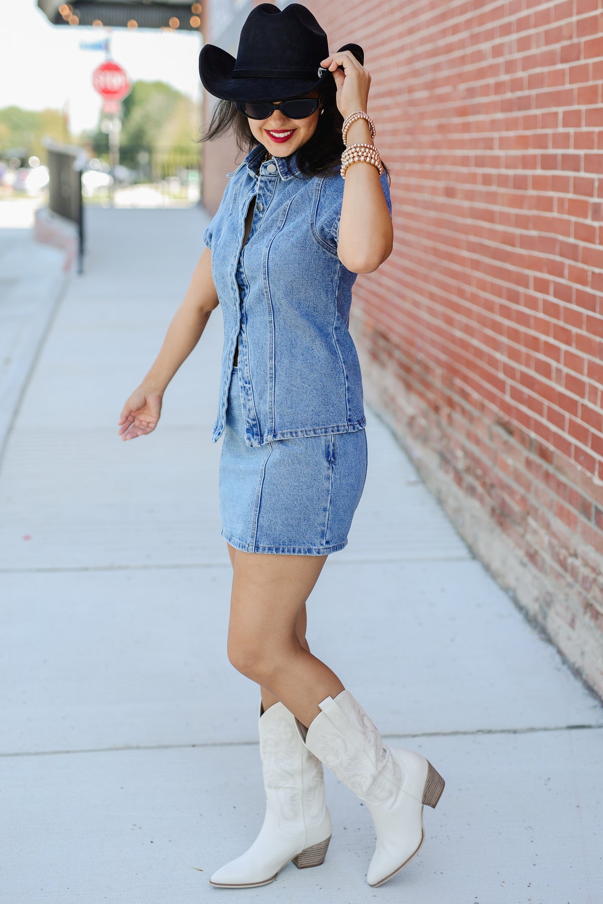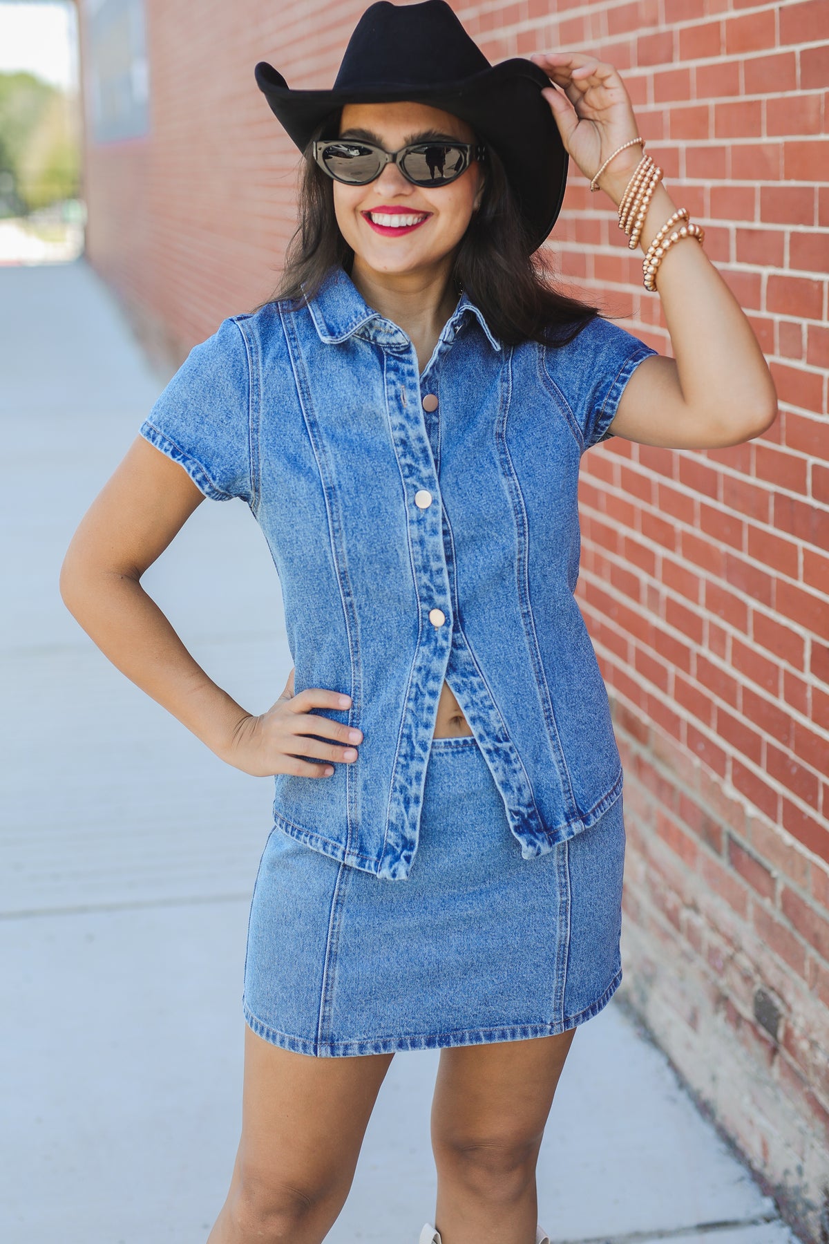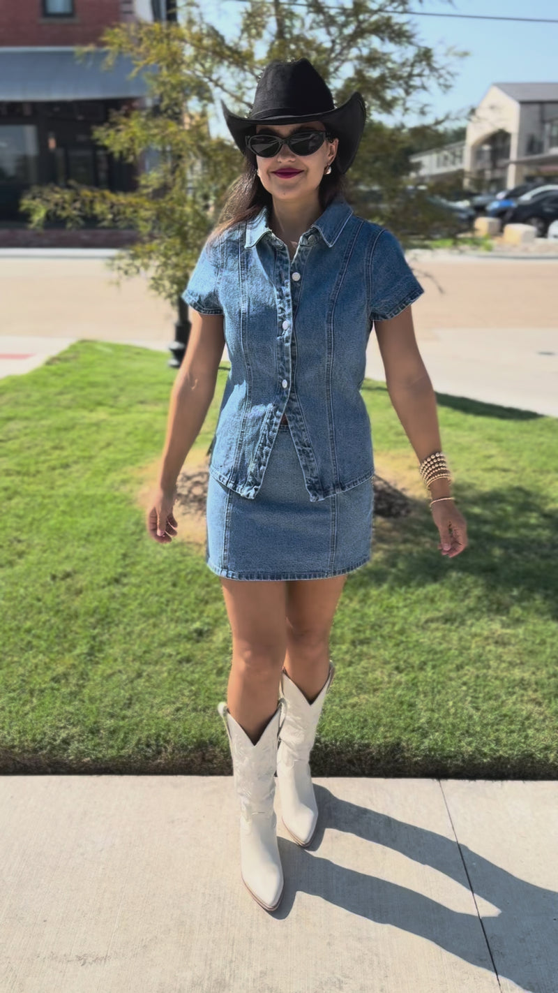 Easy to style year-round, the Bluebird Denim Mini Skirt pairs with everything from tanks and sandals in the summer to sweaters and boots when the weather cools down. Dress it up for brunch with the girls, keep it casual for coffee runs, or edge it up with a crop top for concert nights—it’s as versatile as it is flirty.