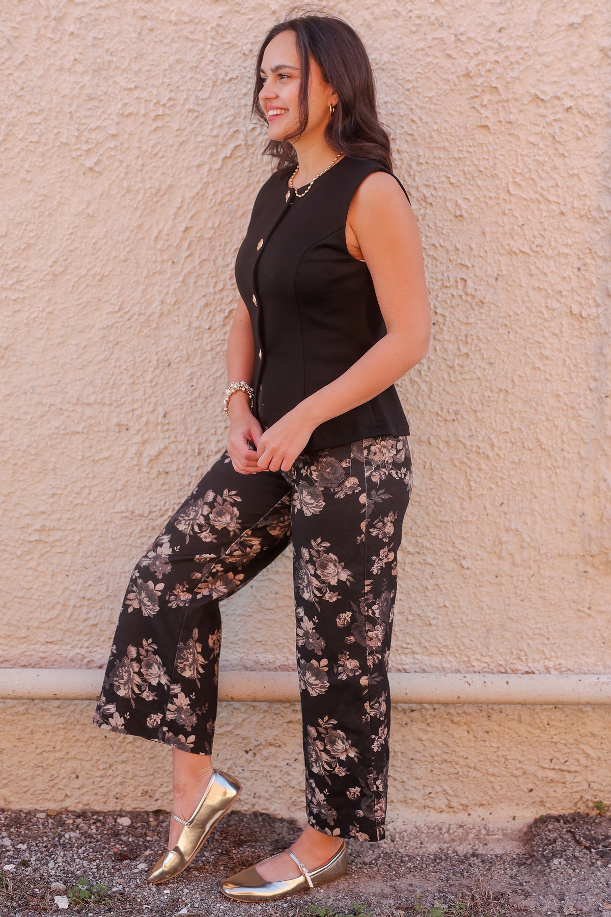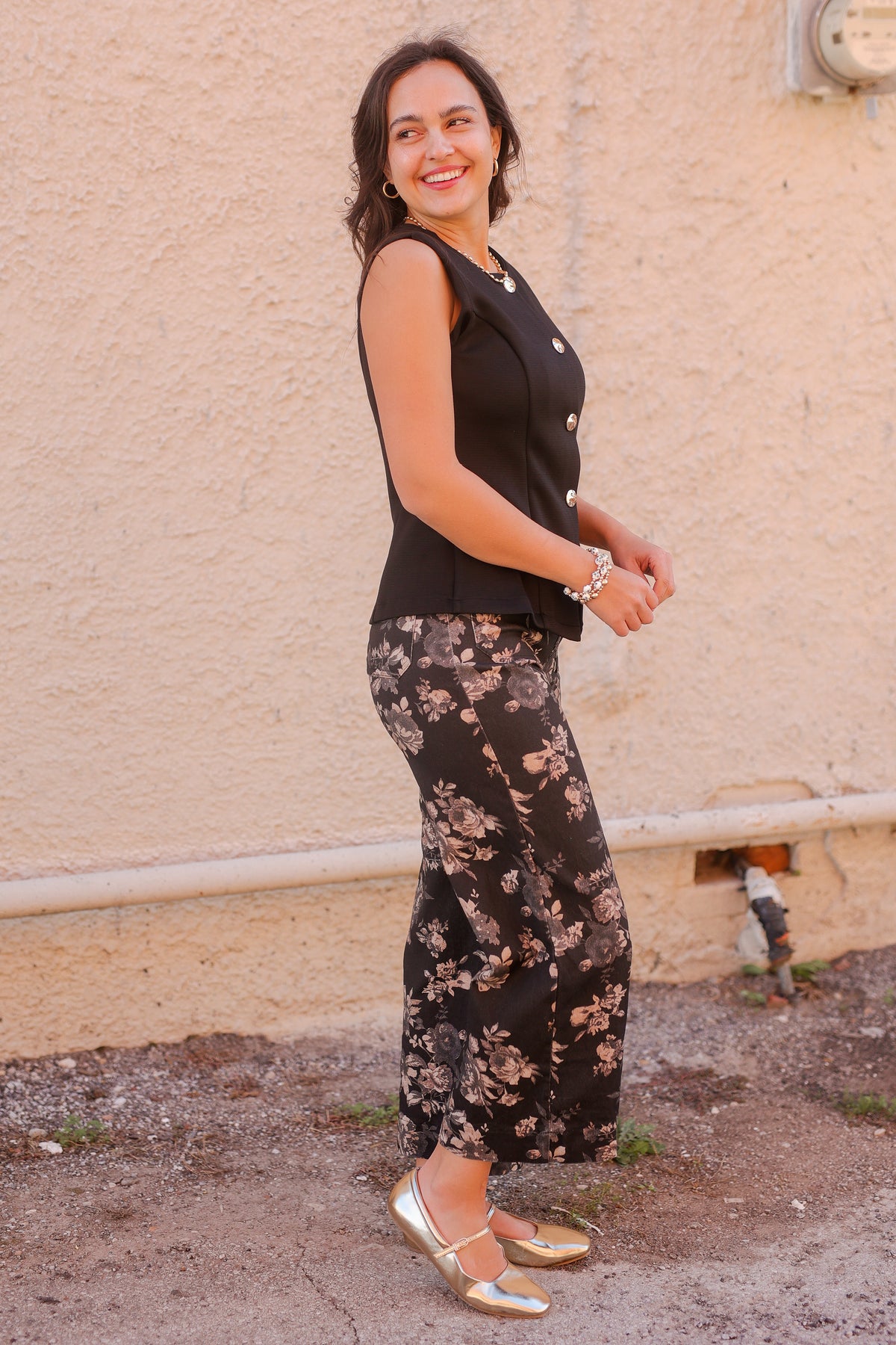 Elevate your wardrobe with this sophisticated button-front vest! Featuring a structured sleeveless design, oversized gold-tone statement buttons, scoop neckline, and a slight peplum hem, this vest is the perfect layering piece for creating polished looks from work to weekend.