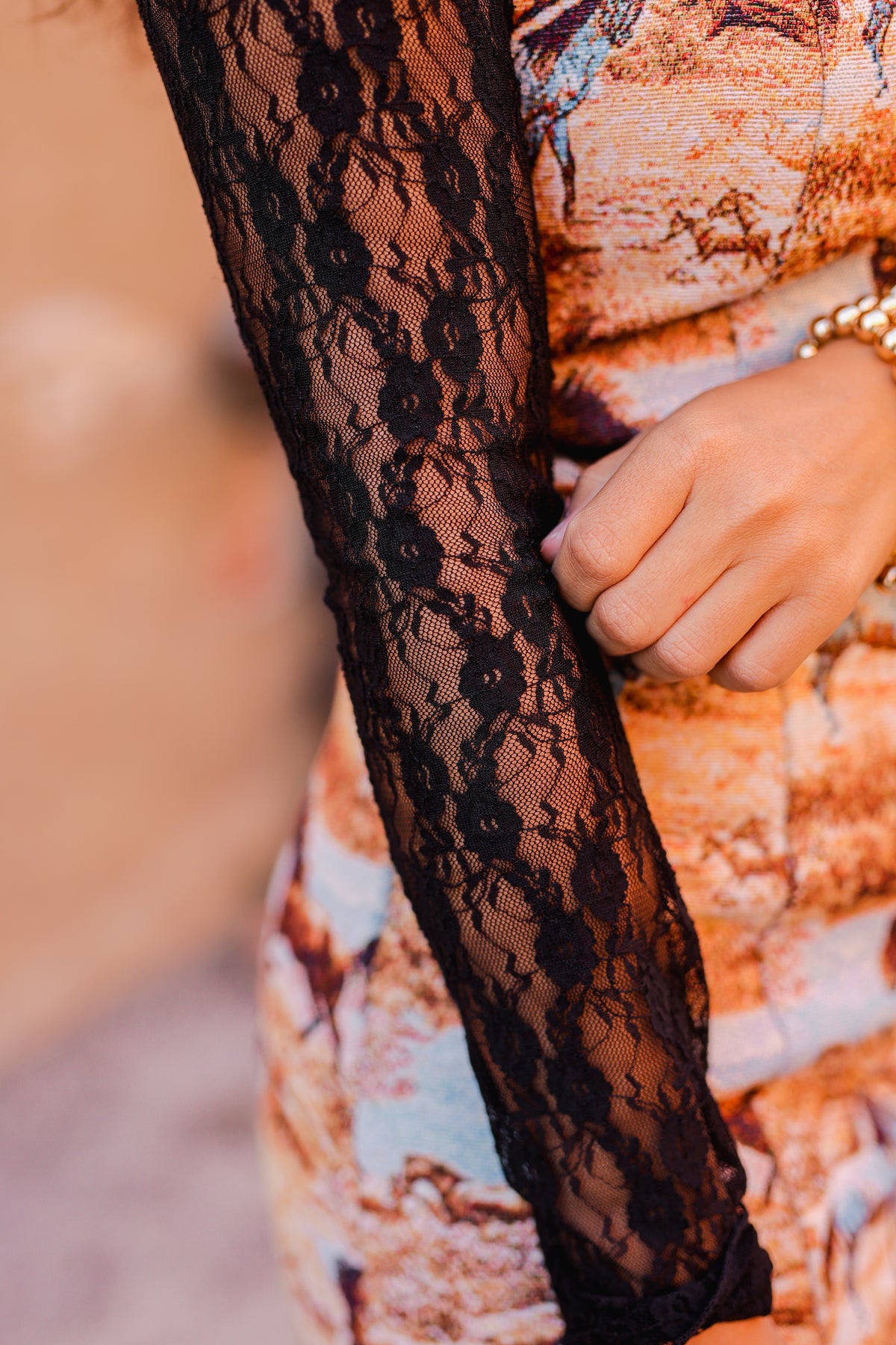 Perfect for evenings out, the Midnight Serenade Lace Top pairs beautifully with high-rise denim and heels, layered over a bralette for a daring vibe, or tucked into a sleek skirt when you’re ready to make an entrance. Lightweight and breathable, it’s a wardrobe staple for any fashion girl who loves her outfits with a touch of drama.