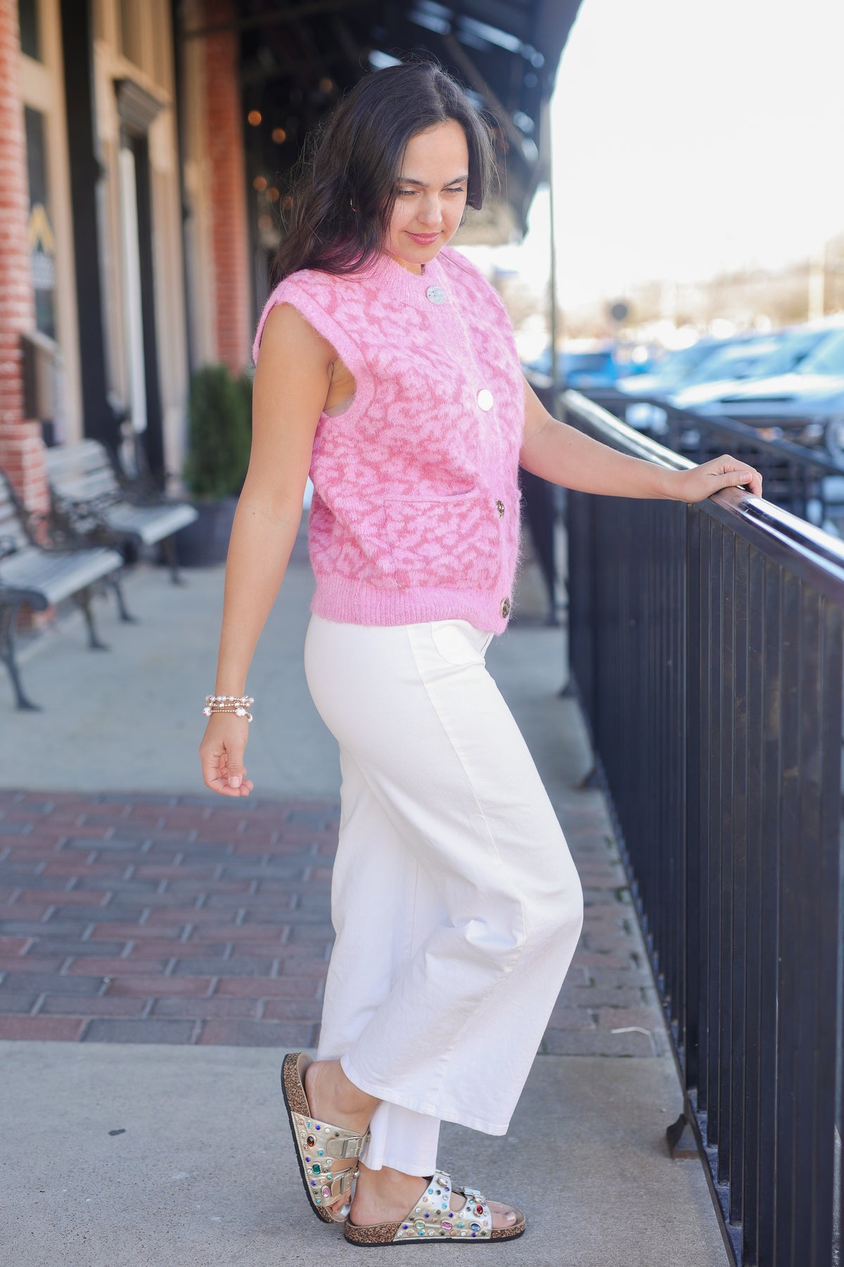 Elevate your wardrobe with this luxe leopard print vest! Featuring a soft fuzzy knit fabric with all-over leopard print, gold-tone button closure, two front pockets, and a relaxed slightly boxy silhouette, this vest is the perfect layering piece for creating polished looks from work to weekend.