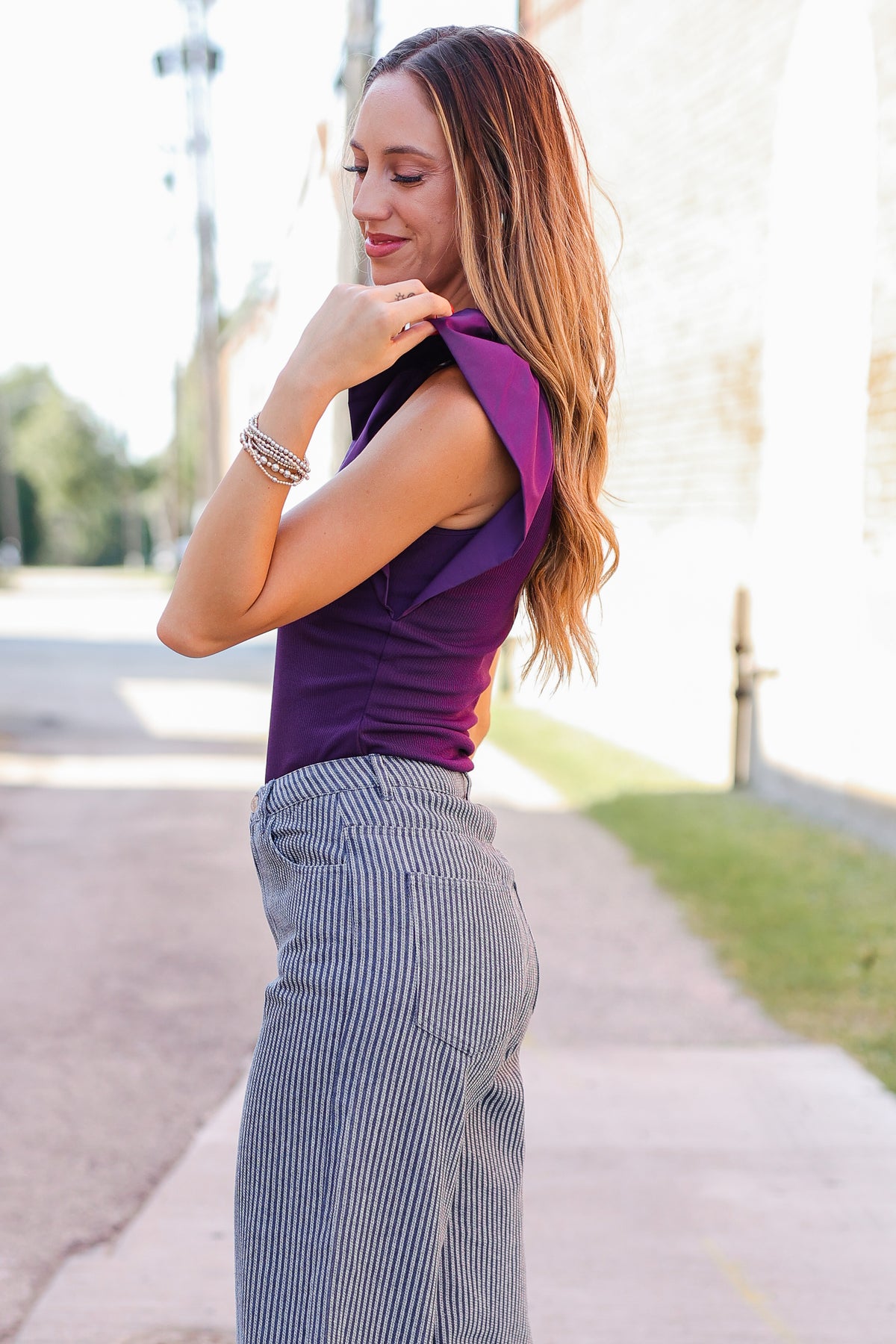 Elevate your everyday style with the Amethyst Ribbed Ruched Sleeve Bodysuit, a versatile women’s bodysuit perfect for layering or wearing solo. Crafted in a rib-knit fabric with a sleek crew neckline, it features delicate cap ruched sleeves for a subtle, feminine detail. Its fitted silhouette pairs effortlessly with high-rise jeans, skirts, or tailored pants for polished, all-day wear.