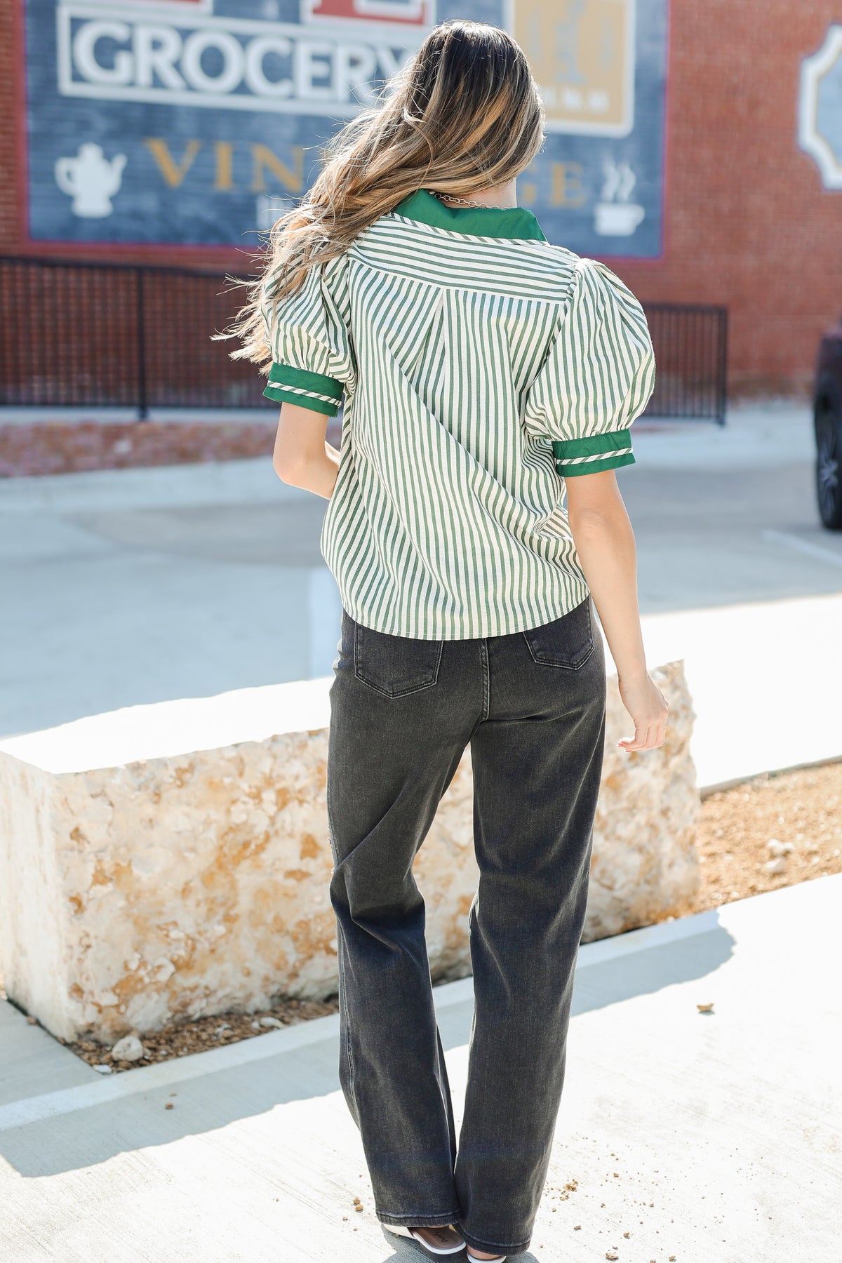With its timeless stripes and statement green accents, the Boardwalk Stroll Blouse brings just the right mix of polished and fun. Pair it with denim for casual outings, tuck it into trousers for a more elevated look, or style it with skirts and sandals for sunny strolls. No matter the setting, this top feels chic, versatile, and perfectly effortless.