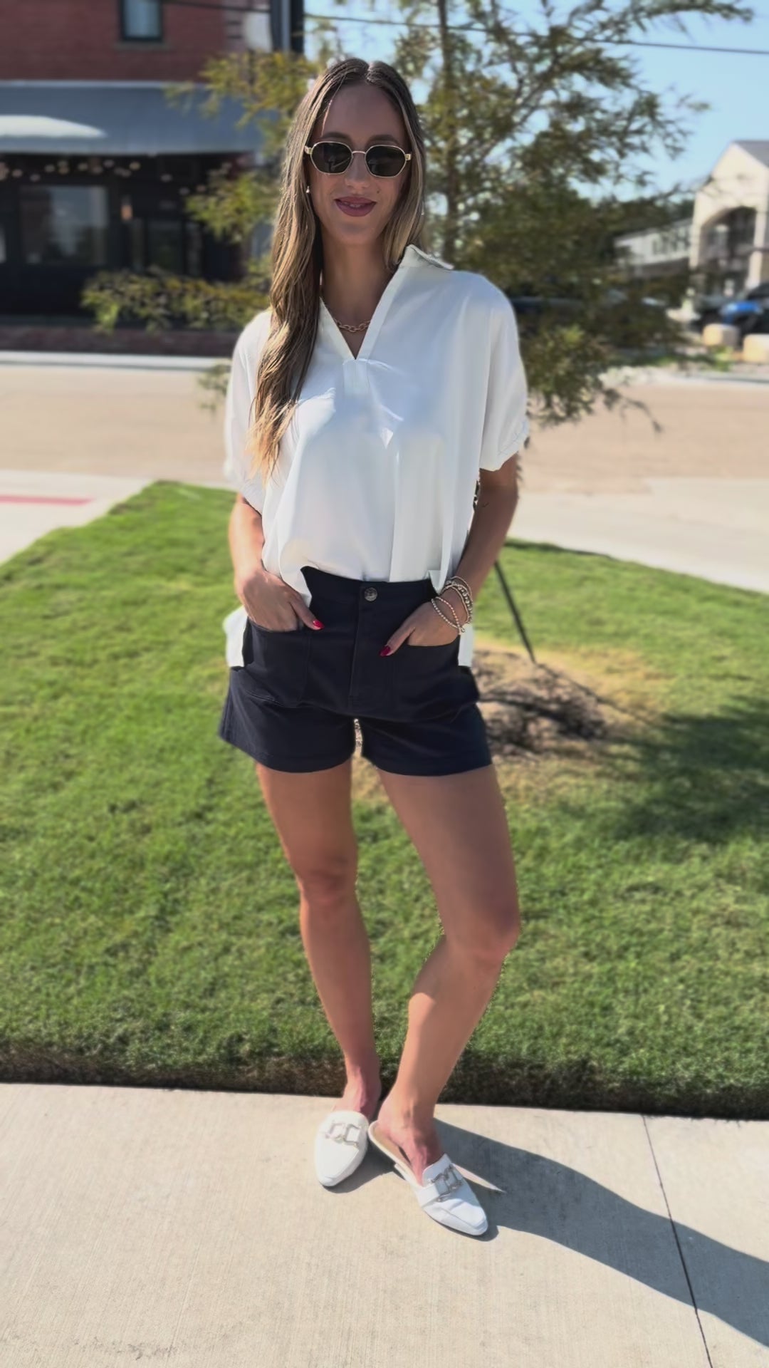 Whether you’re headed to the office, out to lunch, or meeting friends for cocktails, the Elevated Chic Collared Blouse fits right in. Style it with trousers for work, tuck it into a skirt for a dressy vibe, or pair it with denim shorts for casual days. Easy, versatile, and timeless—it’s the blouse you’ll keep reaching for season after season.