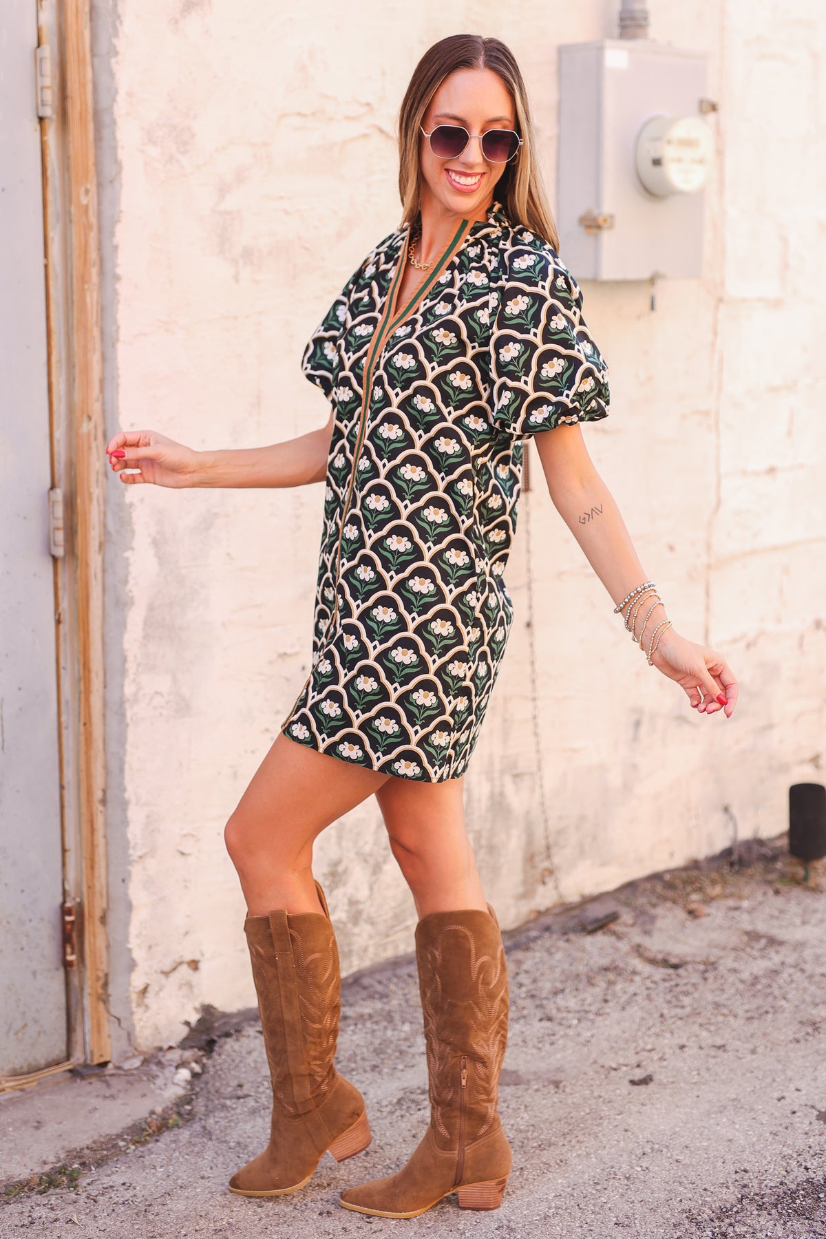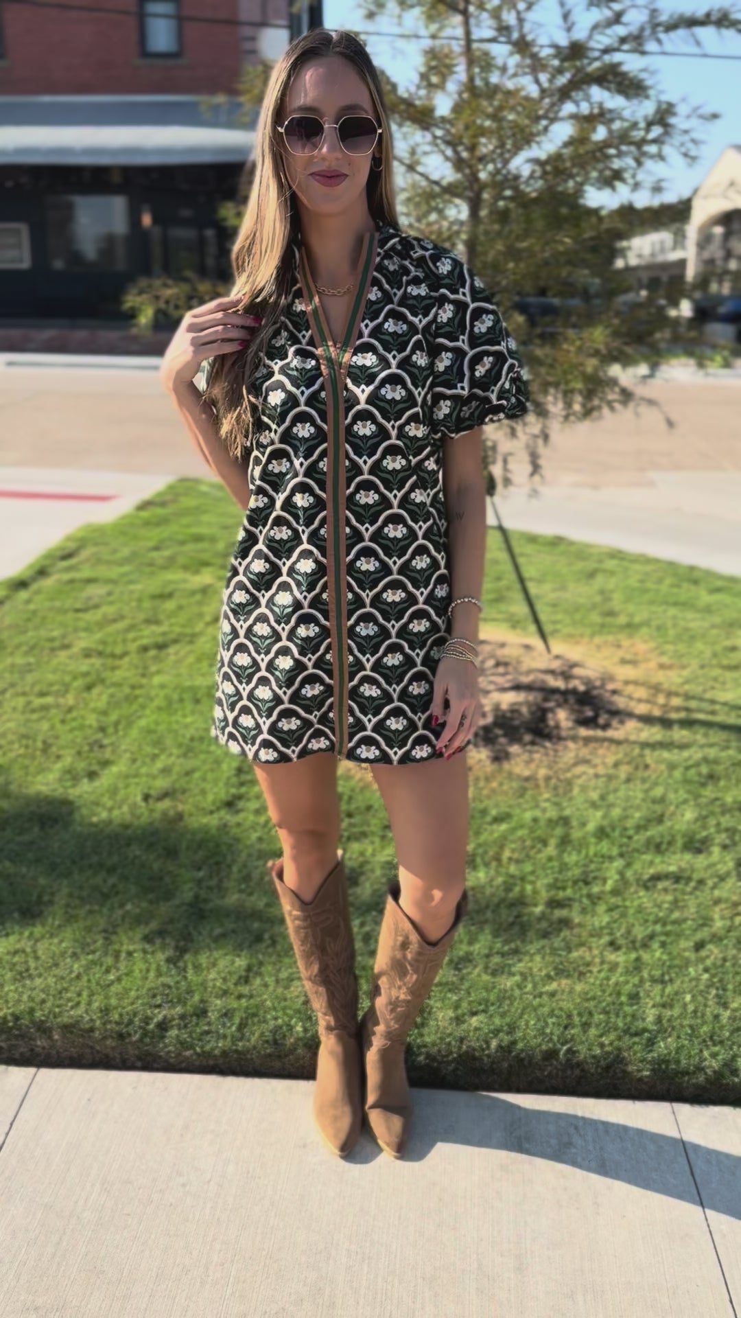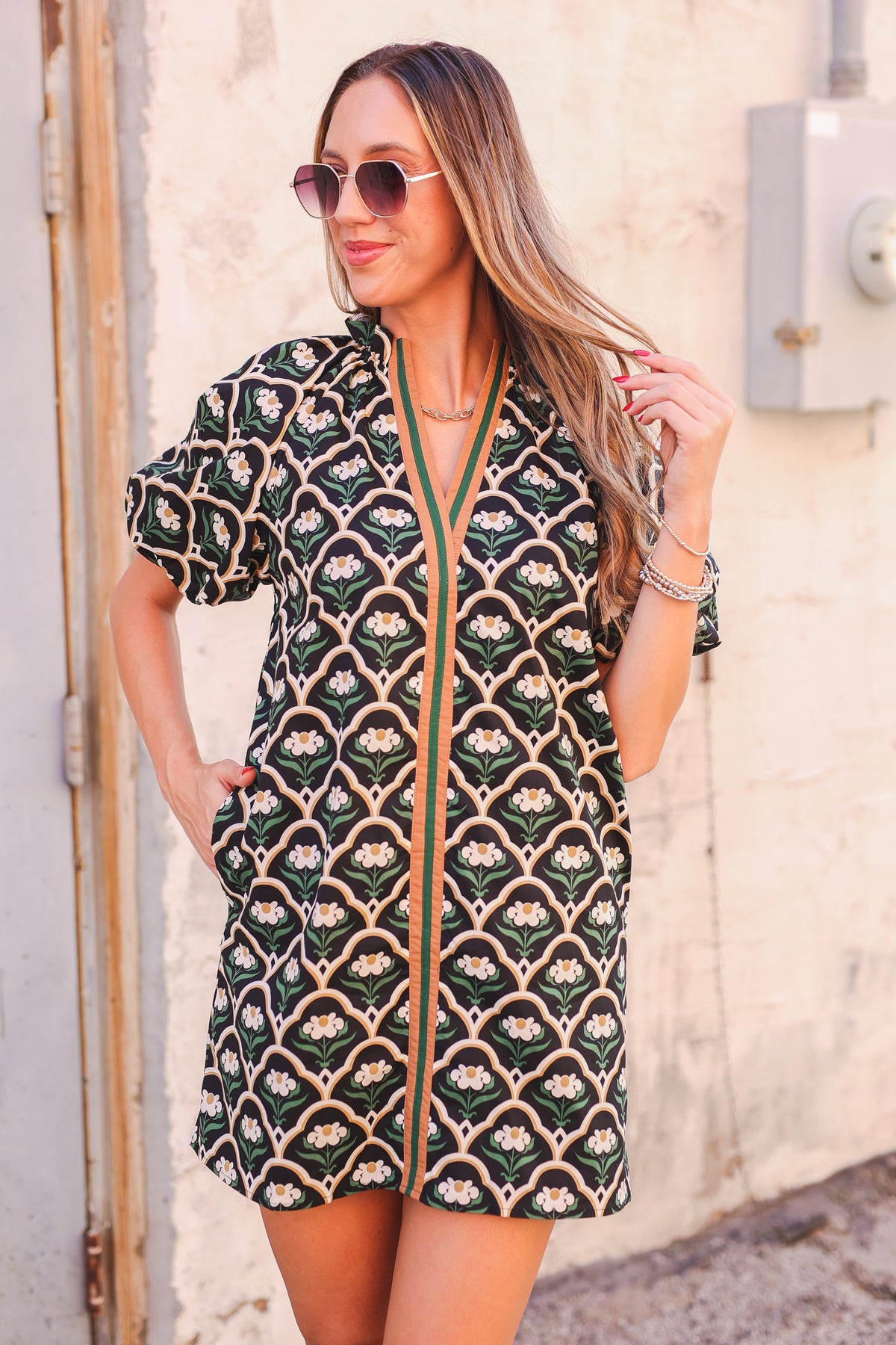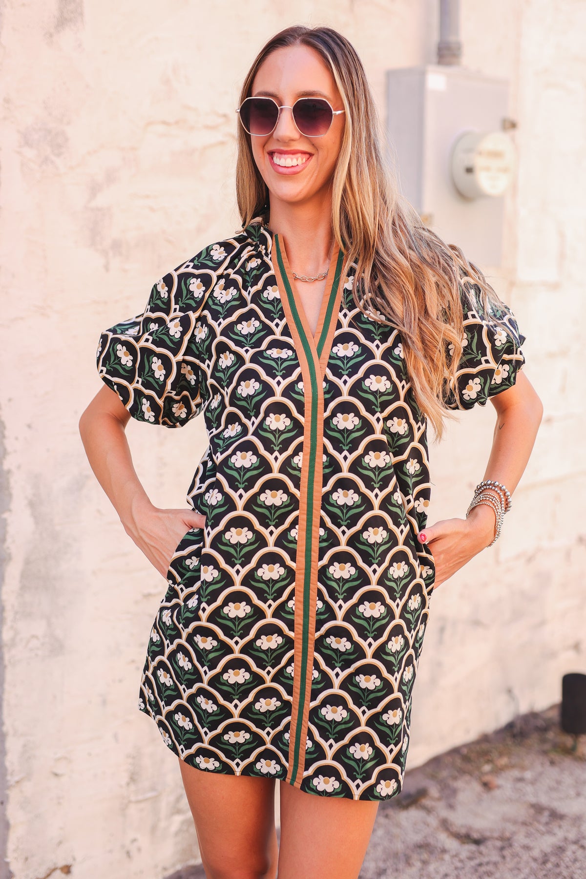 Effortlessly chic, the Midnight Bloom Collar Mini Dress is a versatile women’s dress perfect for day-to-night wear. Featuring a high smocked collar, v-neckline, and short puff sleeves, this mini dress combines feminine details with modern style. The contrast center seam and hidden pockets add subtle sophistication, while the fully lined construction ensures comfort and coverage. Pair with boots, heels, or flats for an effortlessly polished look.