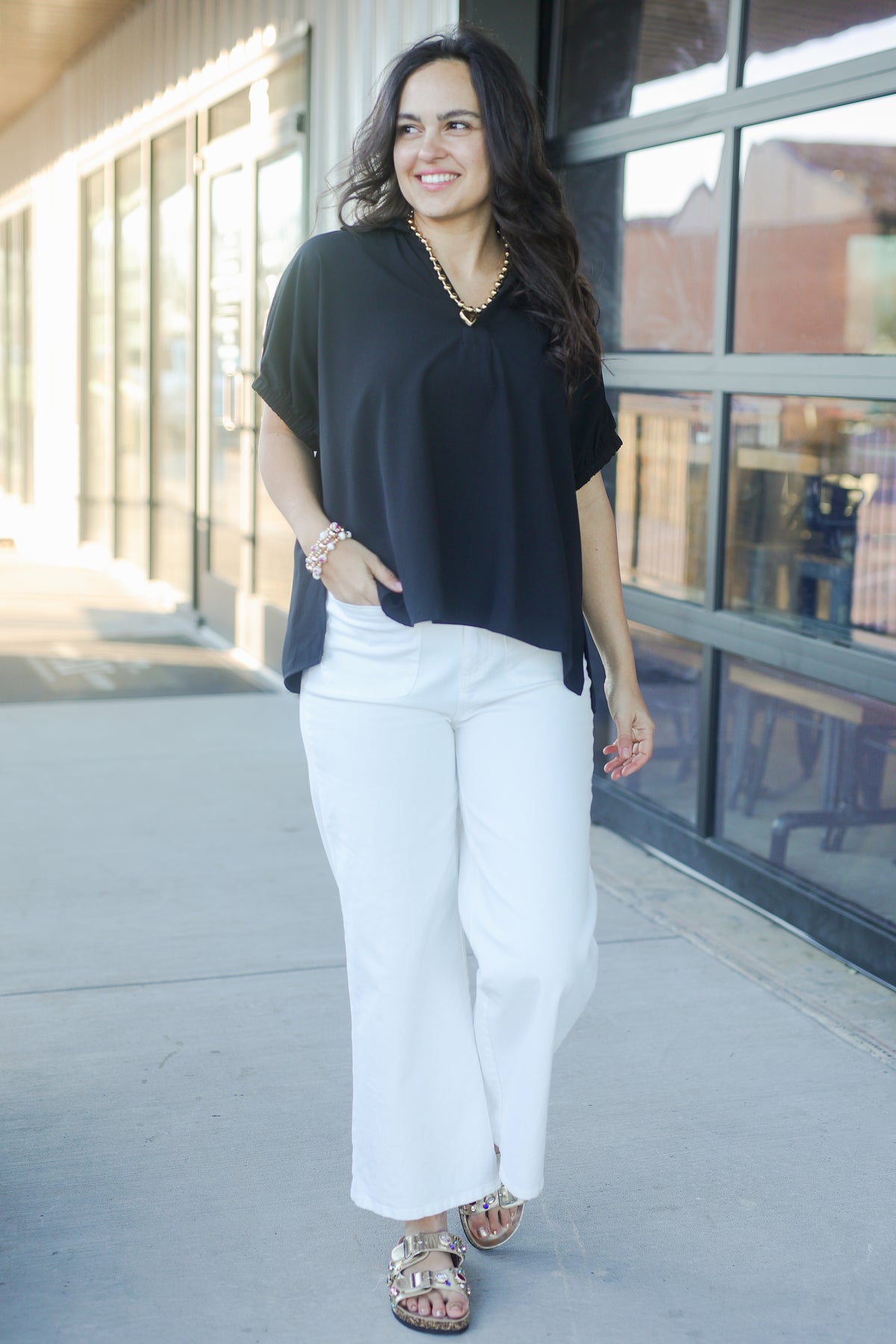 - Wide-leg silhouette